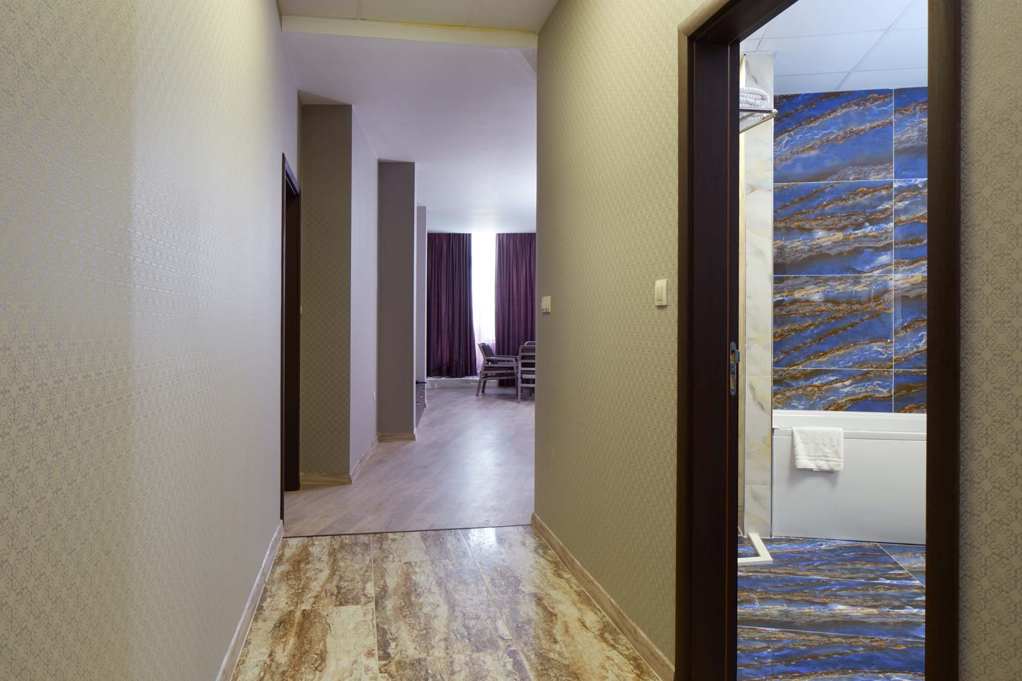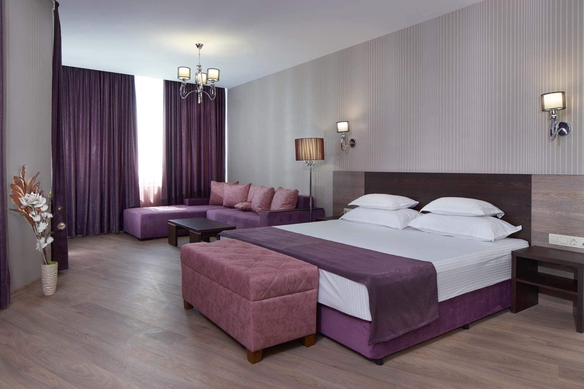 Просторен и комфортен луксозен апартамент с две отделни спални и всекидневна с разтегателен диван и трапезарна маса – идеален за семейства или по-големи компании. Разполага с 100кв.м балкон с шатра с маса и столове за 6 души, шезлонги и чадъри и невероятна панорамна морска гледка, климатик, LCD телевизор, минибар, кухненски бокс, сейф и баня с душ и тангенторна вана за пълноценна почивка.